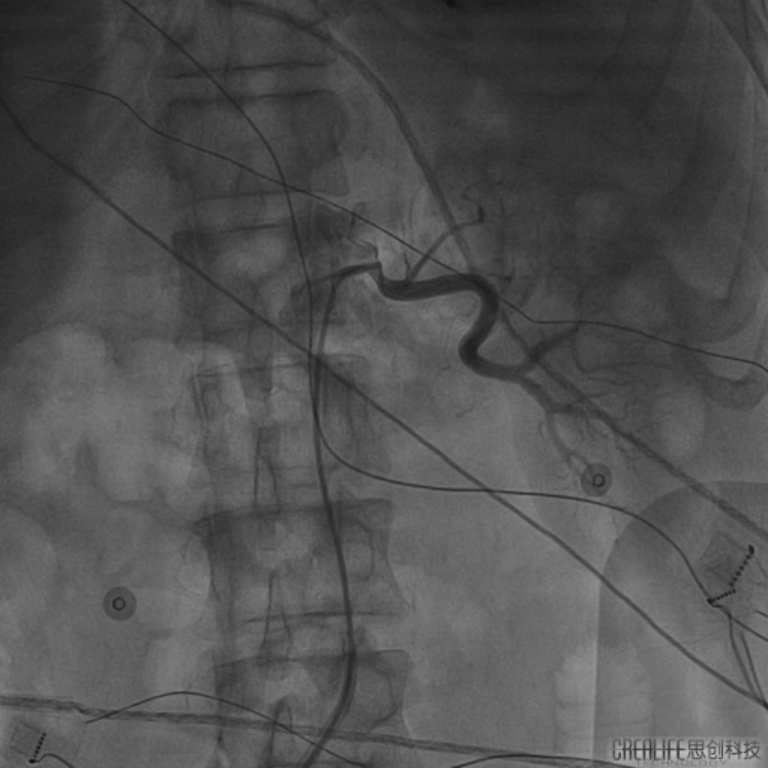 (图为手术过程中对患者进行肾动脉造影定位)