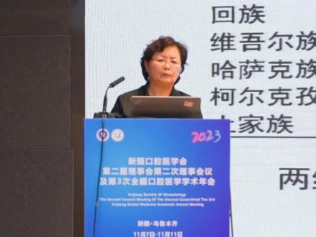会议上,新疆医科大学口腔医(学)院院长赵今、副院长龚忠诚、口腔修复种植科何惠宇教授、口腔正畸科主任米丛波,石河子大学第一附属医院徐江院长,乌鲁木齐市口腔医院汪振华院长,新疆医科大学第二附属医院古力巴哈·买买提力副院长,新疆维吾尔自治区人民医院口腔科陈晓涛主任、口腔颌面外科李军主任,新疆军区总医院口腔颌面外科高瞻主任分别就“龋病治疗进展及临床病例”“唾液腺非肿瘤性病变的临床诊治”“基于肝硬化与口腔菌群相关研究,探讨口腔微生态对全身健康的影响”“数字化时代骨性畸形的正颌外科处理”“口腔激光技术基础与临床应用”“同种异体骨粉的临床应用”“口腔正畸的多学科交叉治疗”“慢性牙周炎的病因学进展”“颌面软组织缺损的修复”和“鼻眶筛并发颧骨复合体骨折的生物力学机制研究现状”等口腔临床上难点和热点问题进行了分享,与自全疆各地的口腔医学专家和医务工作者共同探讨口腔医学的发展趋势、技术创新和应用前景,带来了一场精彩纷呈的学术盛宴。
