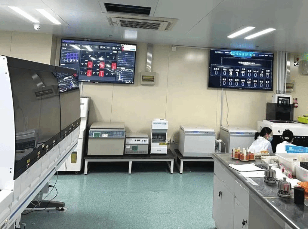 为了提高智慧化水平,助力公立医院高质量发展,医学检验中心还成功采用了全新的数字化、智能化管理模式,在实验室安装了多个智慧大屏,分别能够对生免流水线、分拣系统和气动系统的运营情况进行实时动态的监测,从而了解检验全流程的运行情况,以避免过程中可能出现的质量问题,进一步保障样本结果的稳定与安全,服务好临床与患者。