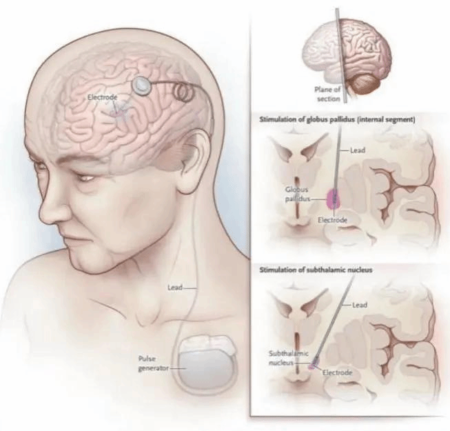 “脑起搏器”植入术即脑深部电极植入术(DBS)是通过将电极植入脑内特定核团或神经结构,刺激目标靶点及附近神经元,激活递质,调节突触可塑性,从而改善帕金森病患者症状,提高生活质量的神经外科治疗手段。对震颤、僵硬、行动迟缓有明确的疗效。