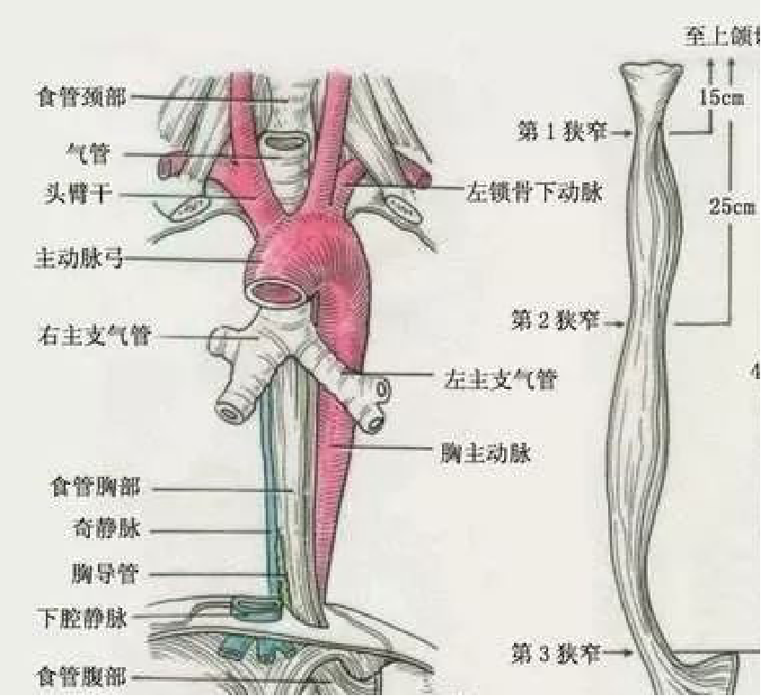 食管有3个生理狭窄,即食管入口、主动脉弓层面、横膈裂孔层面(图)。食管壁非常薄,且入口处狭窄,枣核较小,两头较尖,如果不小心被咽下,容易卡在食管入口处,造成食管损伤。其他层面也有,相对少见,也有报道枣核卡在胃幽门、肠道等位置。