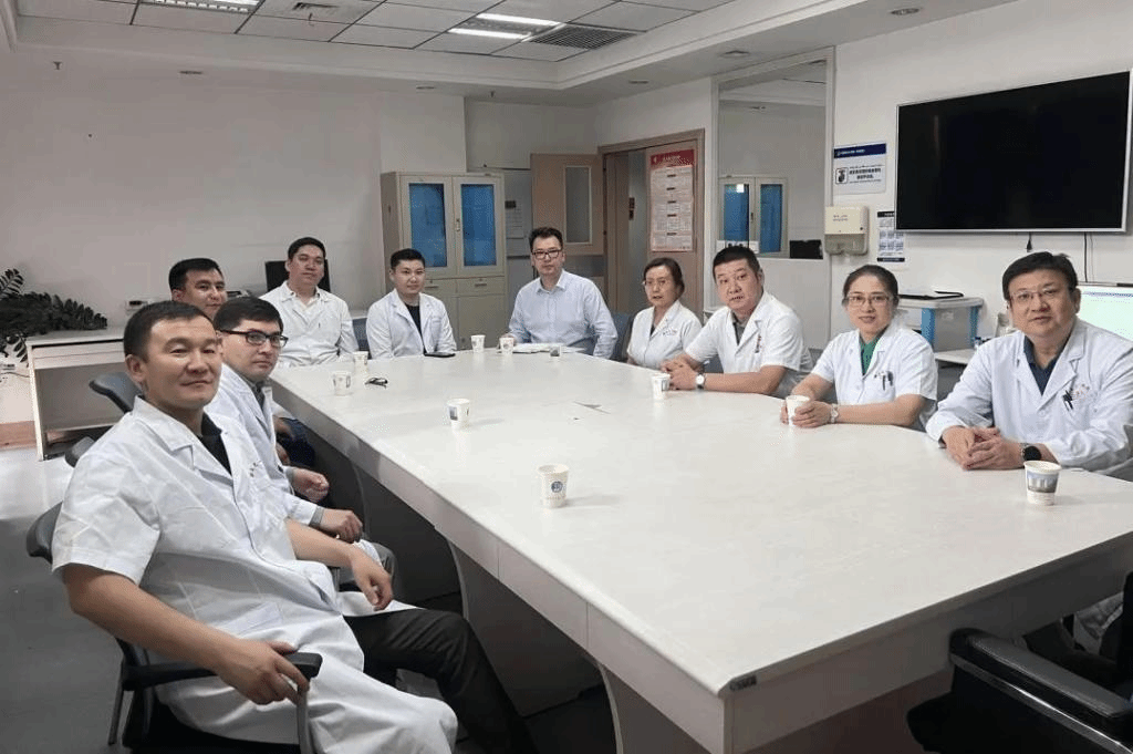 哈萨克斯坦神经外科专家一行5人还实地参观了医院院区、神经外科中心病区、神经外科技能培训中心、手术室、重症医学中心病区、国际医疗病区、远程医学中心等。访问交流中,神经外科中心主任汪永新教授对我院神经外科亚专业学科情况、中心发展情况向来访专家一行进行了介绍,同时组织双方针对相关神经外科诊疗病例进行了讨论,特别是神经外科疾病的诊疗最新进展,医疗服务、人才培养、科研等方面等都进行了深入探讨和交流。